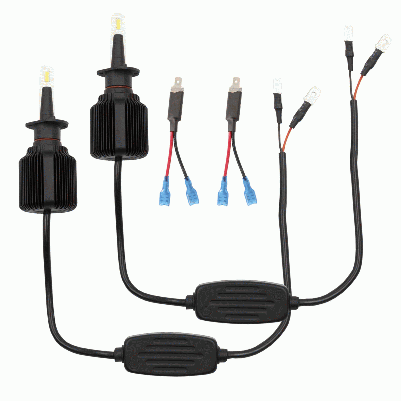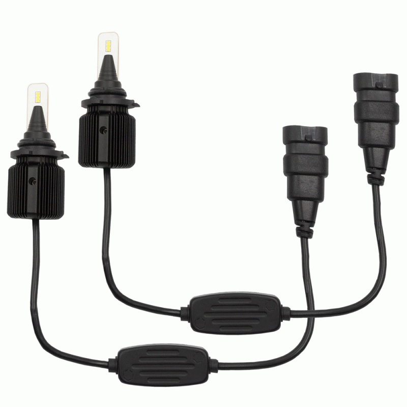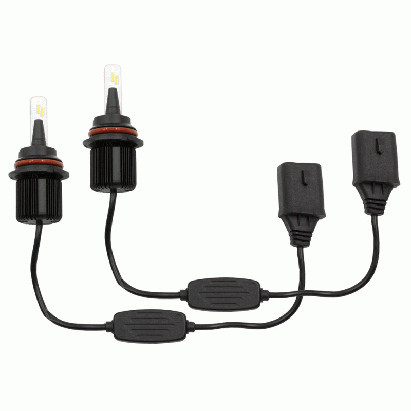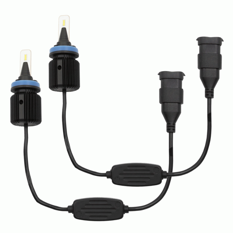These bright lights are designed to fit into tight spaces with a compact design that does not compromise performance. By engineering a high density fin design, these bulbs stay as cool or even cooler than traditional LED bulbs with bulky heat sinks or messy braid designs. The light output is equally impressive with a total of 6,000 lumens of cool white (6500K) illumination per pair using 20 watts per bulb. Kits are available in the most common headlight sizes.